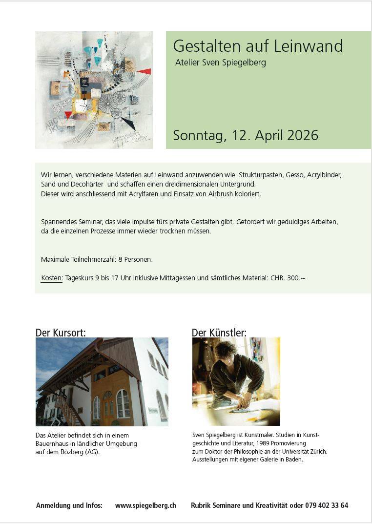 Ein spannendes Ganztagesseminar, das viele Impulse für privates Gestalten gibt.